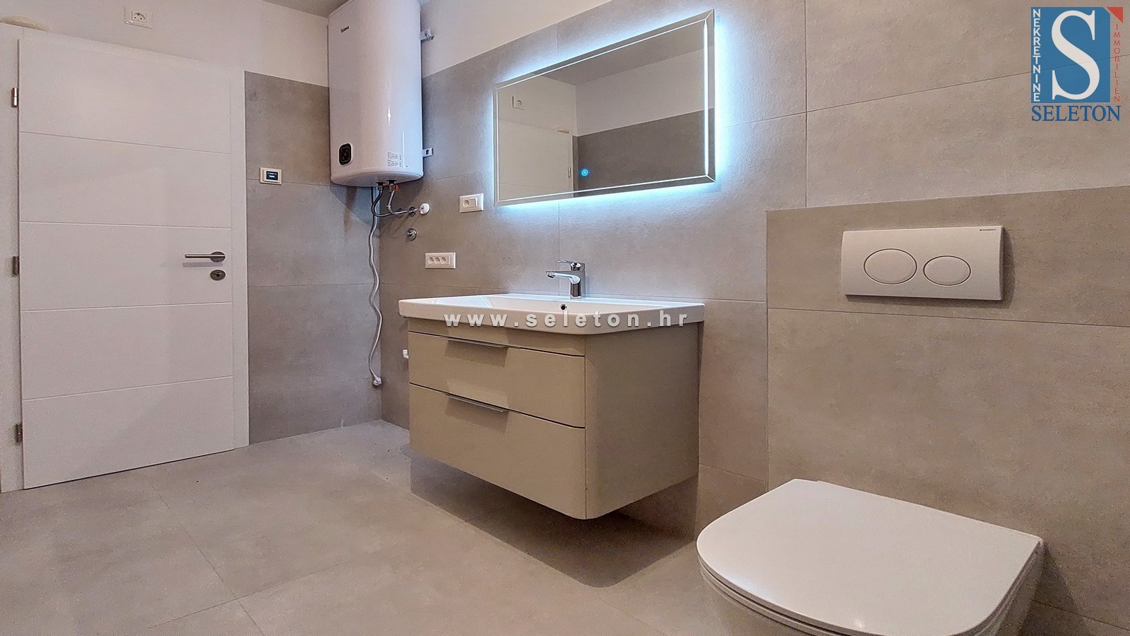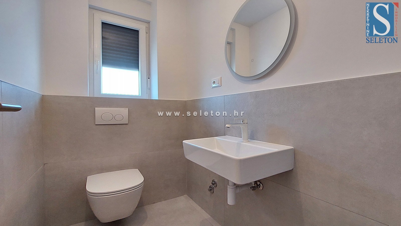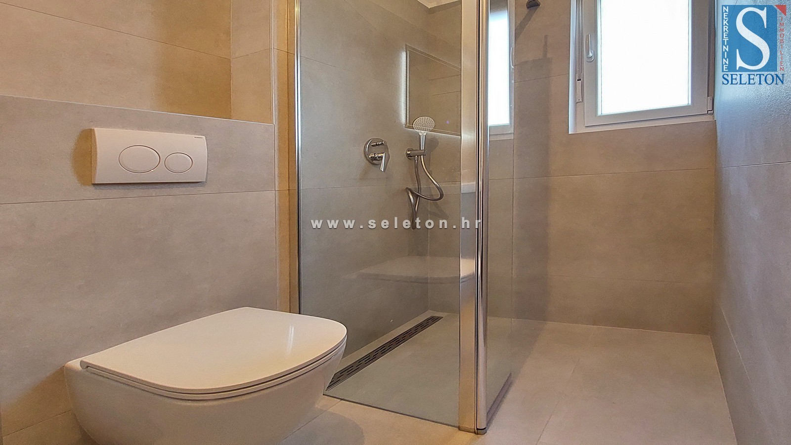 Zum Verkauf steht eine Wohnung in der Gegend von Poreč, 67 m2, bestehend aus Wohnzimmer, Esszimmer, Küche, Flur, überdachter Terrasse, zwei Schlafzimmern, Badezimmer und Toilette. Die Wohnung befindet sich im 1. Stock eines Gebäudes mit Aufzug, hat Meerblick, elektrische Fußbodenheizung im Wohnbereich und Badezimmer, Sicherheitseingangstür, Klimaanlage im Wohnzimmer und in den Schlafzimmern, Abstellraum im Keller des Gebäudes mit 5 m2 und zwei Parkplätze vor dem Gebäude. Die Wohnung liegt etwa 2,5 km vom Meer und 9 km vom Zentrum von Poreč entfernt. In der Umgebung gibt es Restaurants, Cafés, Apotheke und einen Supermarkt.