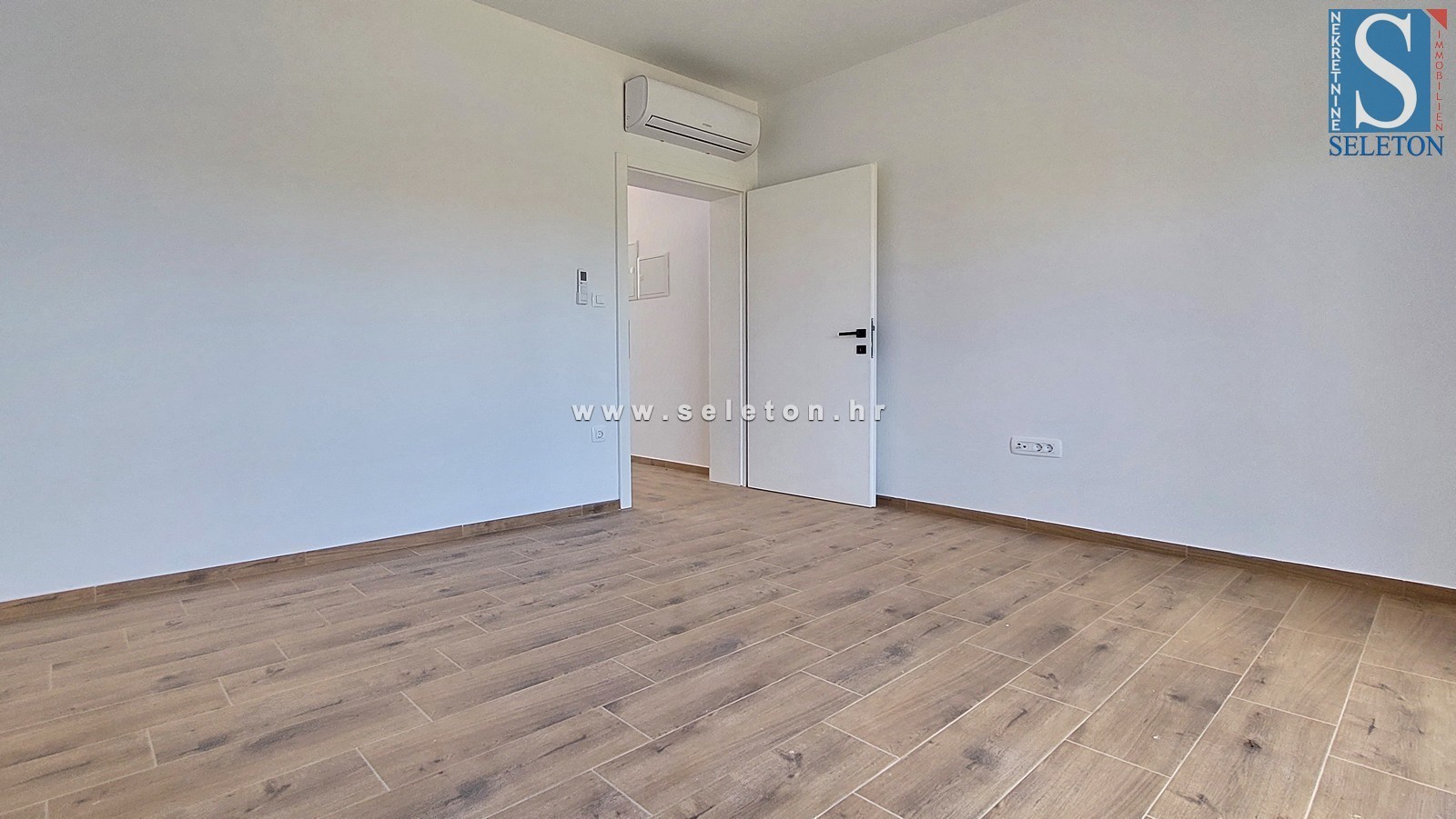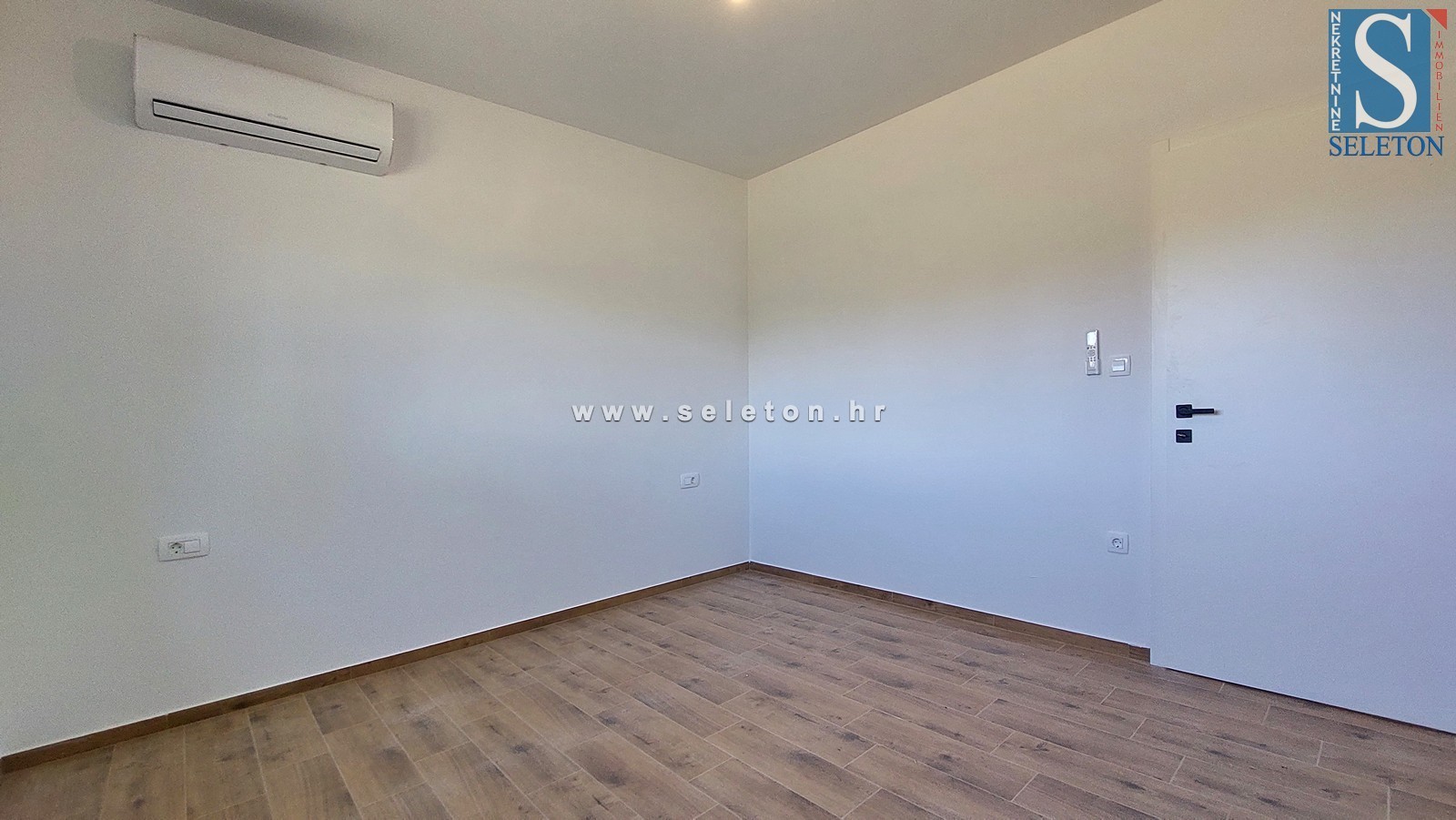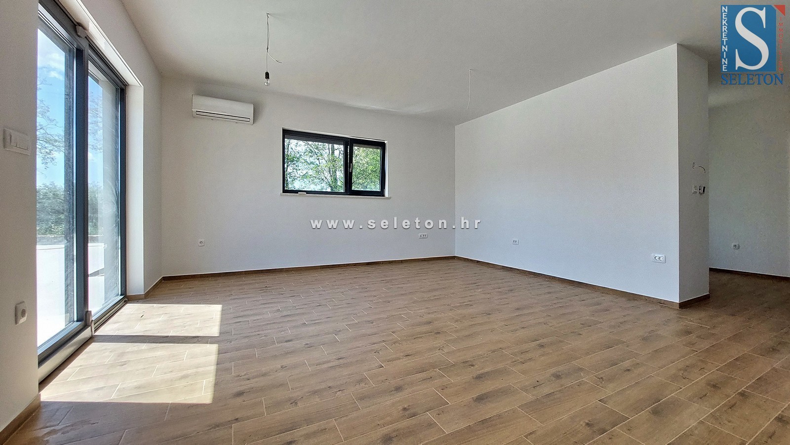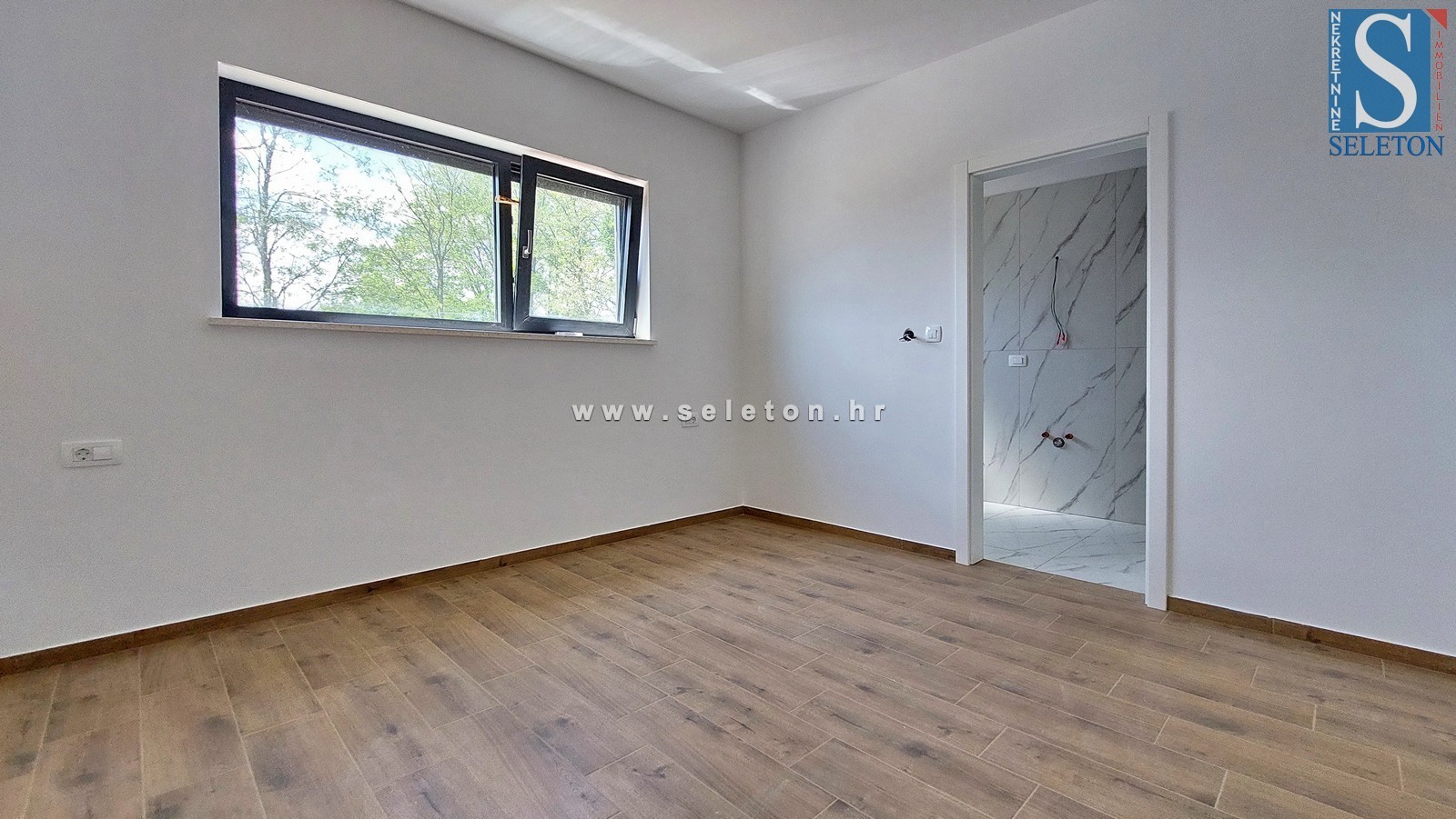 A modern semi-detached house with an area of 136 m² is for sale. It consists of a living room, kitchen, dining room, terrace, bedroom, bathroom, storage room, hallway and storage room on the ground floor and a hallway, 3 bedrooms, 2 bathrooms and a terrace on the first floor of the house. The house has electric underfloor heating, air conditioning in all rooms, the land has an area of 670 m², on which there are also 2 parking spaces and a swimming pool. The house is approx. 8 km from Poreč and 9 km from the sea.