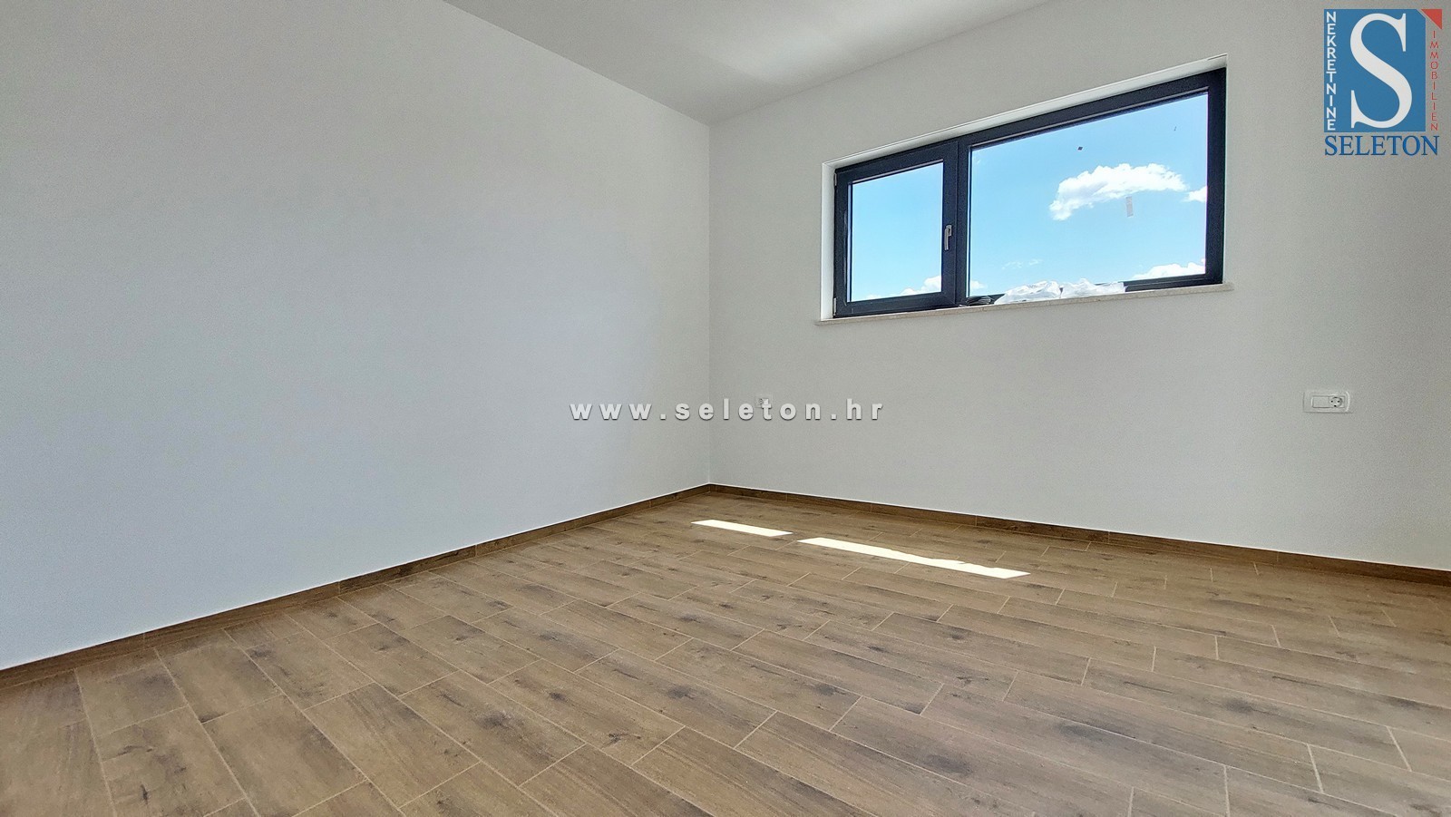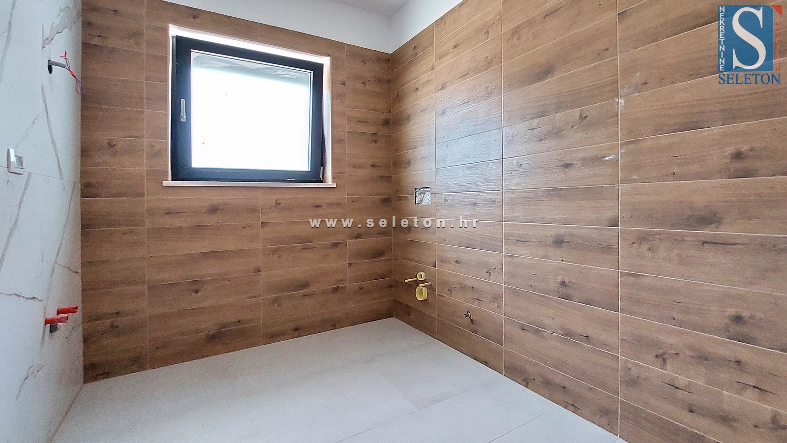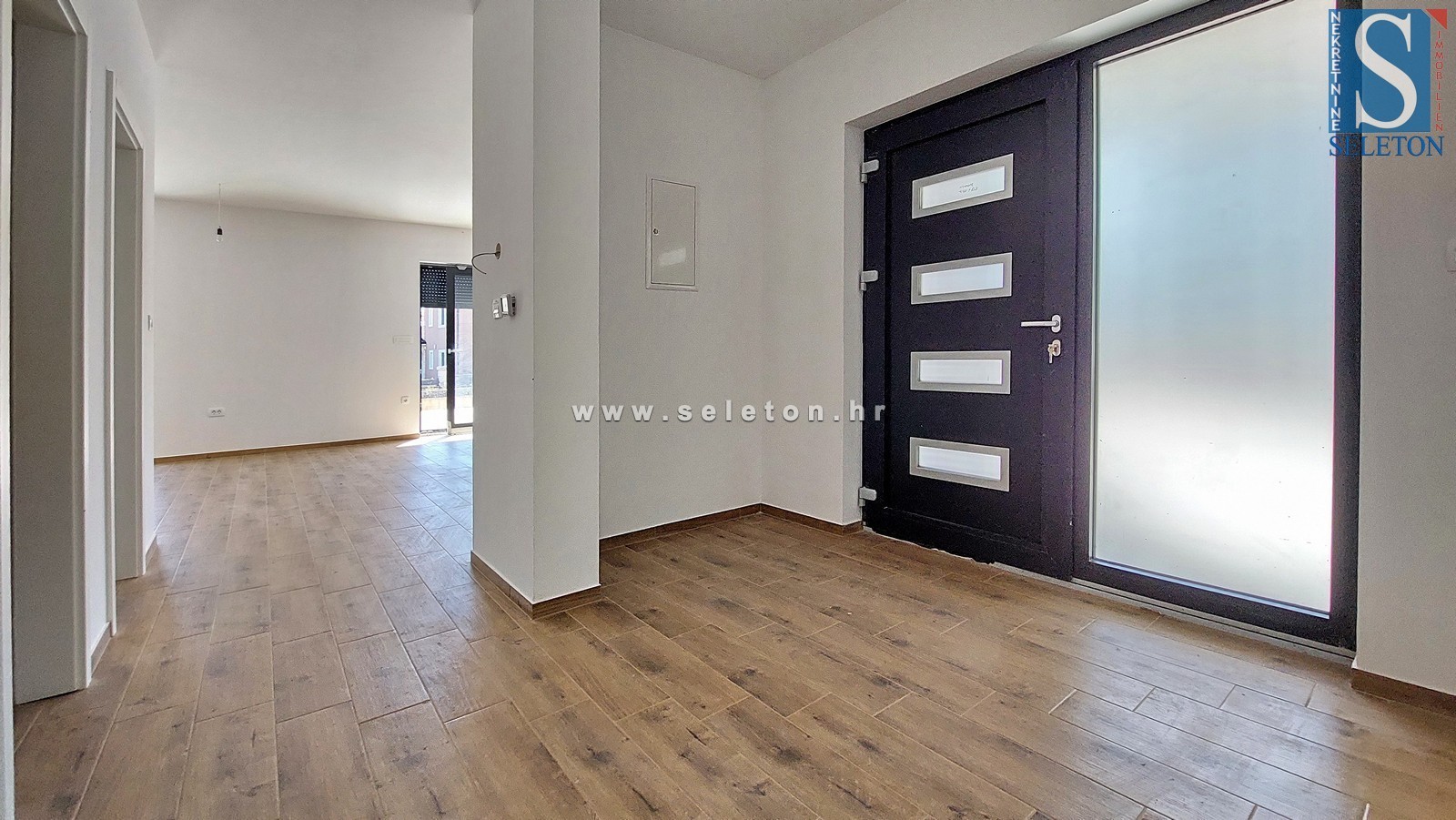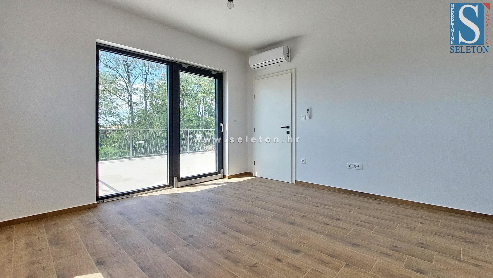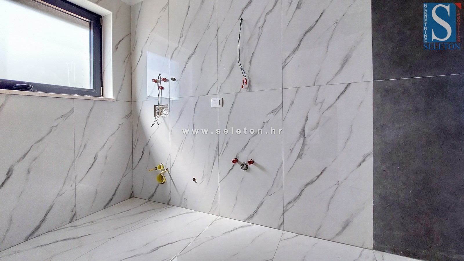 A modern semi-detached house with an area of 136 m² is for sale. It consists of a living room, kitchen, dining room, terrace, bedroom, bathroom, storage room, hallway and storage room on the ground floor and a hallway, 3 bedrooms, 2 bathrooms and a terrace on the first floor of the house. The house has electric underfloor heating, air conditioning in all rooms, the land has an area of 670 m², on which there are also 2 parking spaces and a swimming pool. The house is approx. 8 km from Poreč and 9 km from the sea.