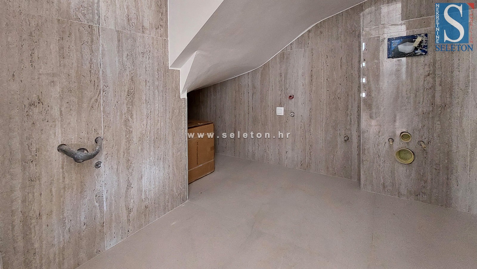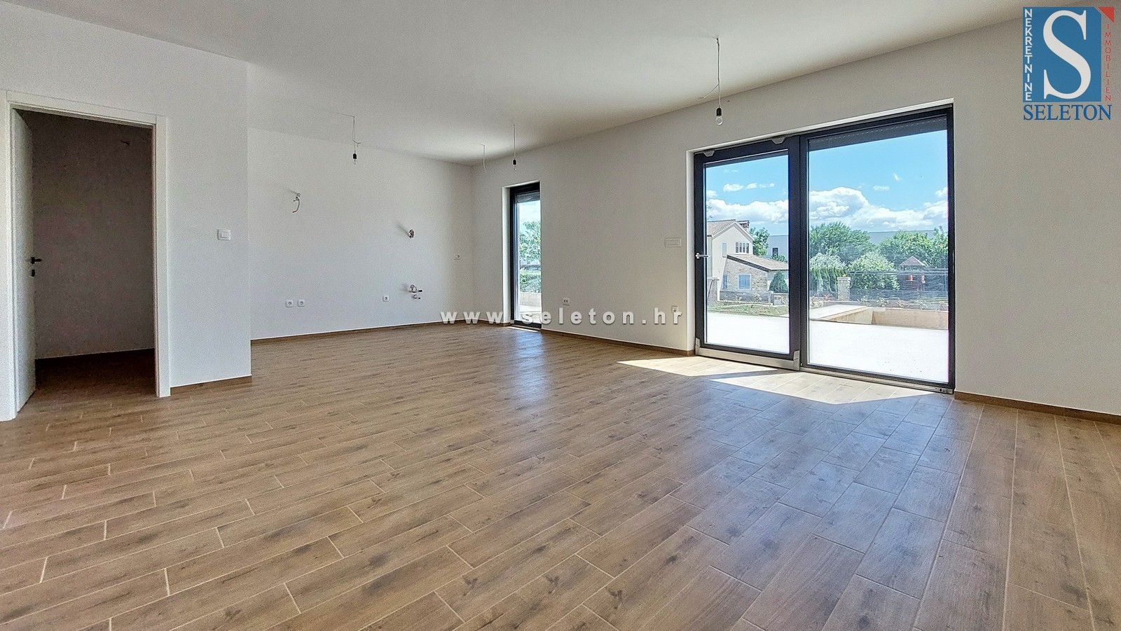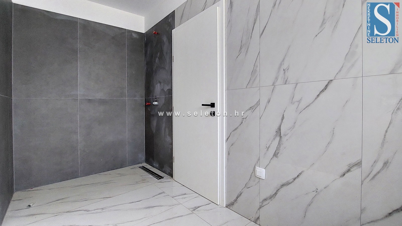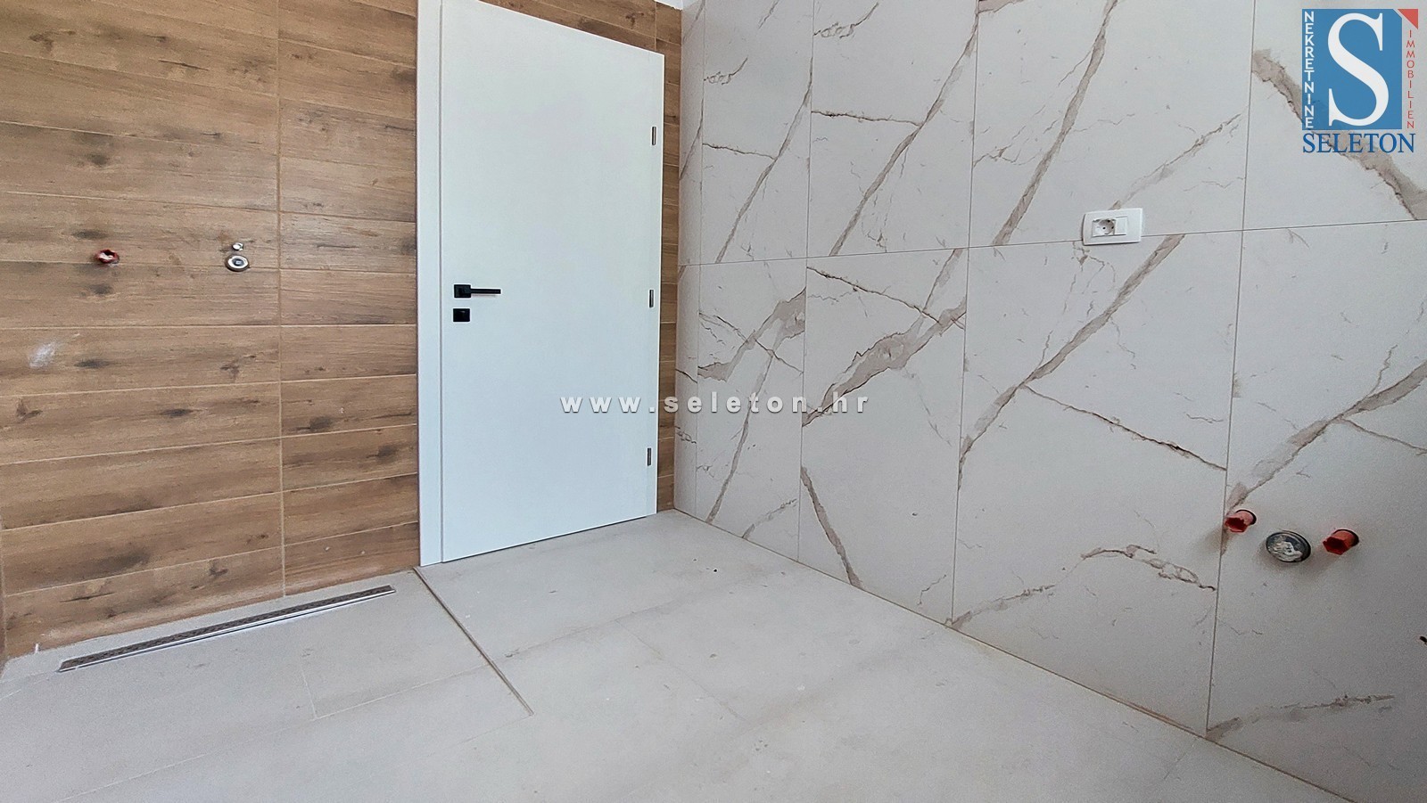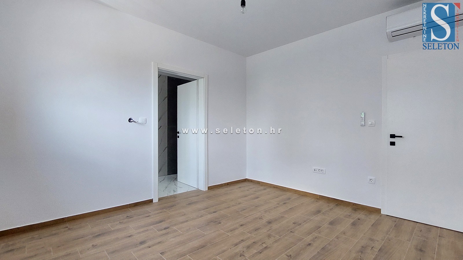A modern semi-detached house with an area of 136 m² is for sale. It consists of a living room, kitchen, dining room, terrace, bedroom, bathroom, storage room, hallway and storage room on the ground floor and a hallway, 3 bedrooms, 2 bathrooms and a terrace on the first floor of the house. The house has electric underfloor heating, air conditioning in all rooms, the land has an area of 670 m², on which there are also 2 parking spaces and a swimming pool. The house is approx. 8 km from Poreč and 9 km from the sea.
