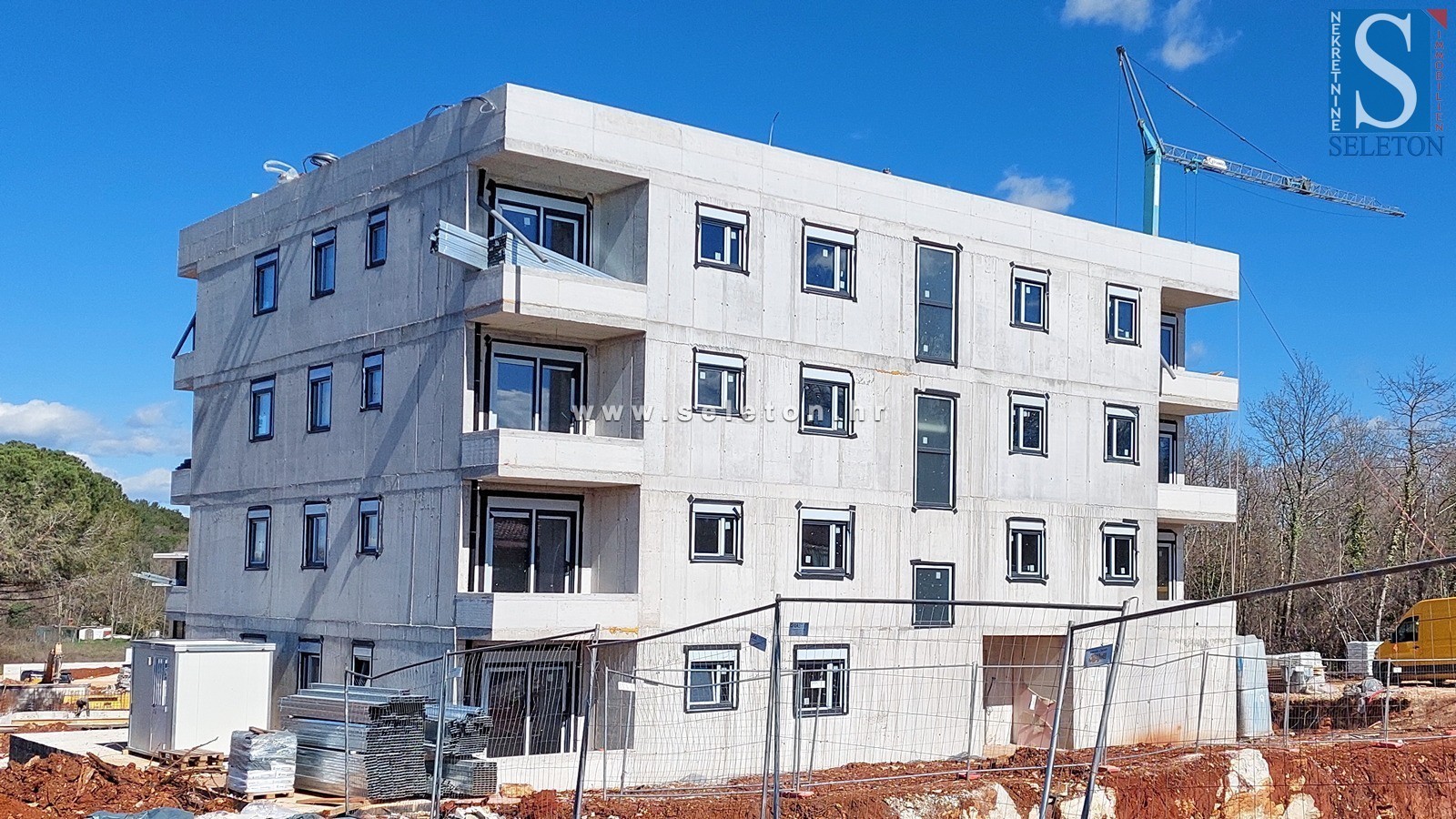 Poreč, u neposrednoj blizini centra grada, na prvom katu moderne zgrade s liftom i podzemnom garažom, prodaje se novi stan površine 64 m², sastoji se od dnevnog dijela, natkrivene terase, hodnika, 2 spavaće sobe, ostave i kupatila. Stan ima podno grijanje u cijelom stanu (dizalica topline Daikin Altherma), priprema tople sanitarne vode je također putem dizalice topline sa spremnikom od 160 litara, ima 3 klima uređaja marke Daikin ( u dnevnom boravku i spavaćim sobama ), PVC prozore s tri stakla, komarnicima i motoriziranim roletama, ulazna vrata stana su protuprovalna i protupožarna. Zgrada ima fasadni sustav od kamene vune debljine 12 cm, koji uz PVC prozore s 3 stakla, osigurava vrhunsku toplinsku i zvučnu izolaciju, kao i visoku energetsku učinkovitost samog stana. Stan se nalazi na mirnoj i atraktivnoj lokaciji, udaljen je ca 1,3 km pješke od mora/plaže i 2,5 km od centra Poreča.