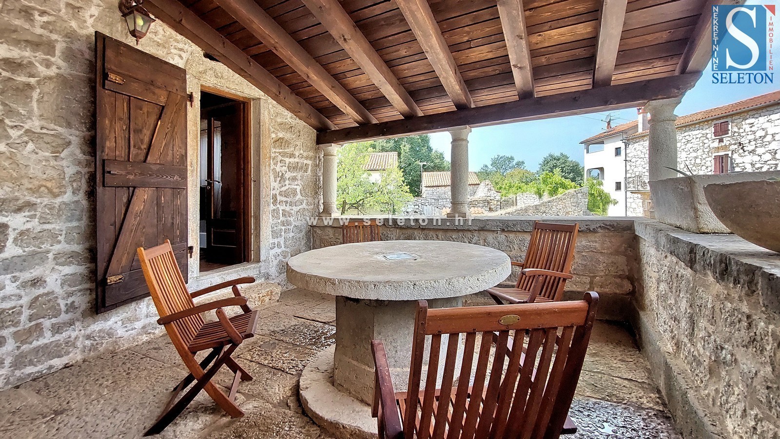Iznajmljuje se kamena kuća u bližoj okolici Poreča površine 83 m², kuća ima tri etaže, sastoji se od kuhinje, blagovaonice i kupatila u prizemlju kuće, dnevnog boravka i terase na katu, te 2 spavaće sobe u potkrovlju kuće. Kuća je udaljena ca 5 km od Poreča, 6 km od mora/plaže, namještena je, ima dva klima uređaja, iznajmljuje se na duži rok, tj. na period od godinu dana s mogućnošću produljenja.