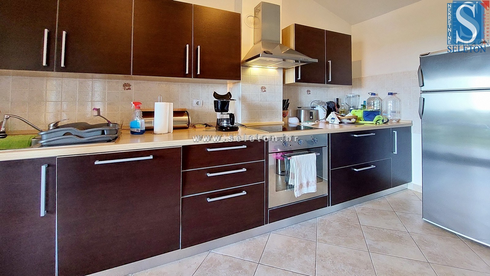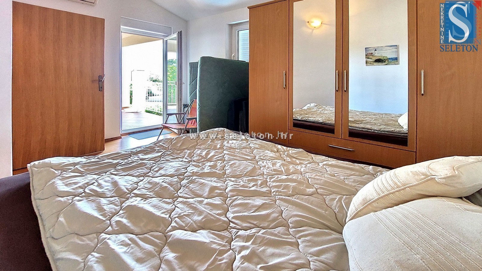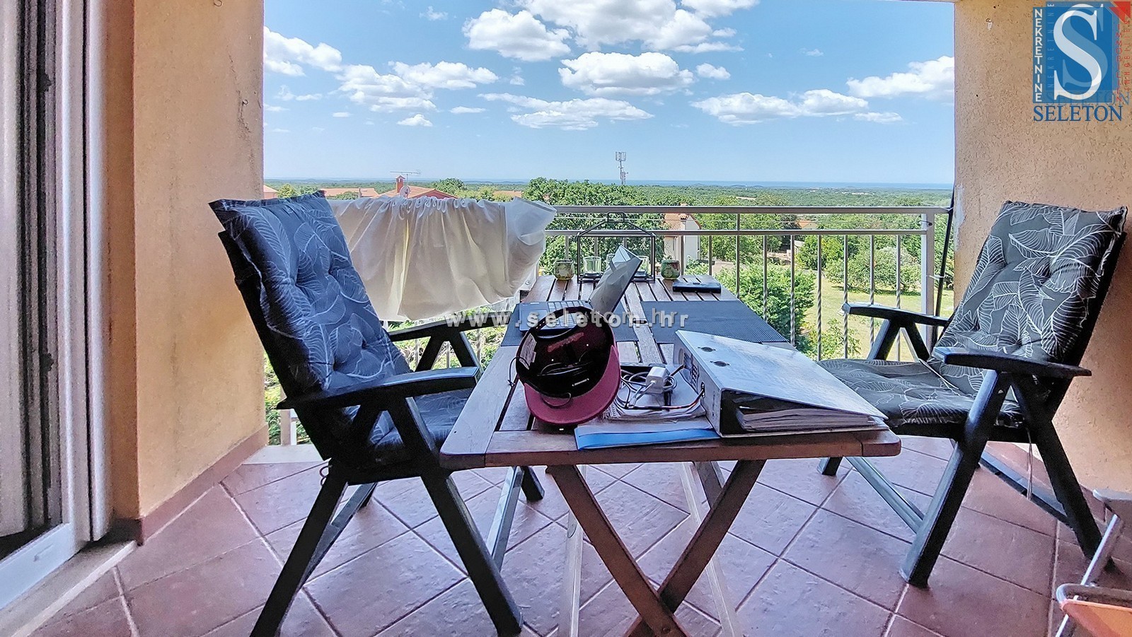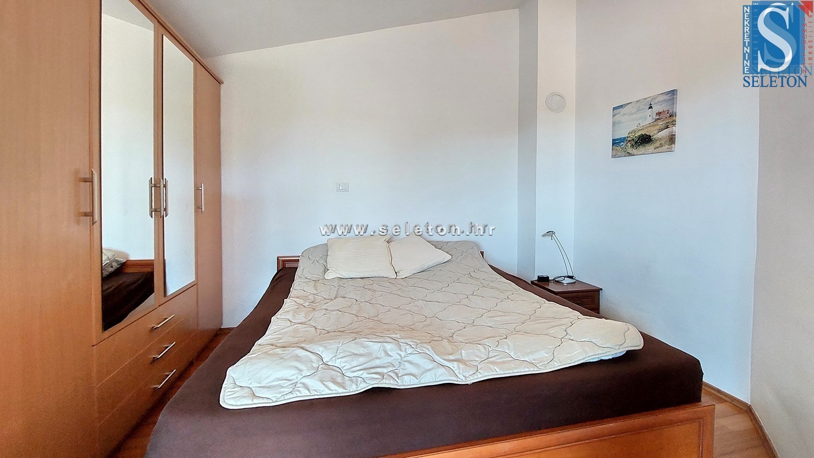 Poreč - Baderna, iznajmljuje se namješteni stan površine 71 m², stan se nalazi na drugom katu zgrade, sastoji se od dnevnog boravka s blagovaonicom, terase s koje se pruža pogled na more, kuhinje, dvije spavaće sobe (od kojih jedna ima terasu), ostave, hodnika, kupaonice i WC-a. Stan se iznajmljuje na duži rok, tj. na period od godinu dana s mogućnošću produljenja, ima 3 klima uređaja, jedno parkirno mjesto ispred zgrade i pravo korištenja zajedničkog bazena. Mjesečni najam iznosi 900 eura + troškovi režija.