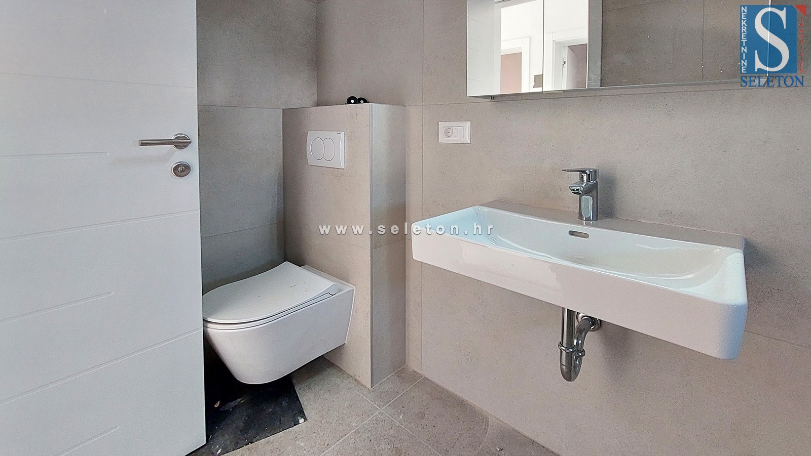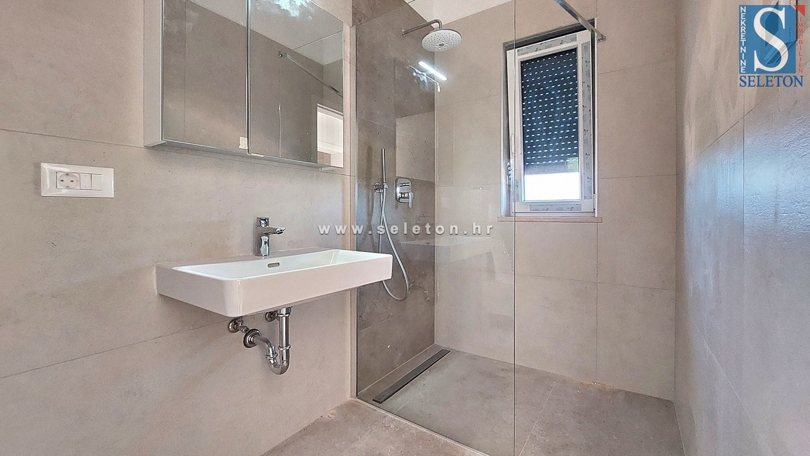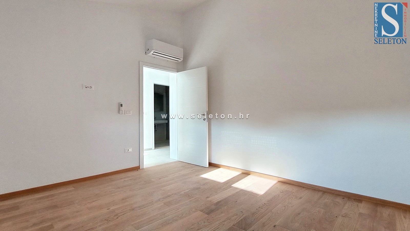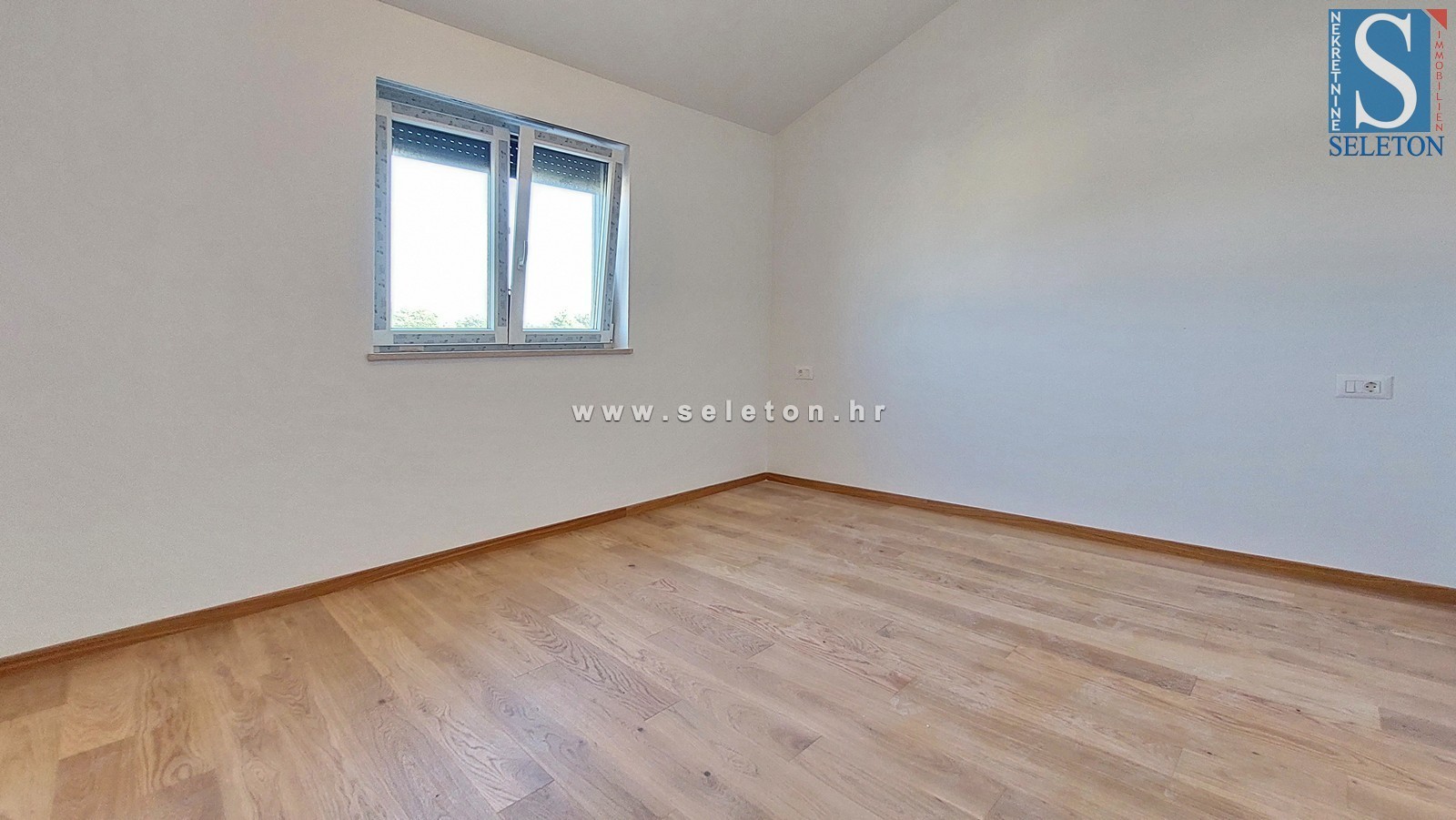 Prodaje se novi stan u okolici Poreča površine 68 m², sastoji se od dnevnog boravka, blagovaonice, kuhinje, hodnika, natkrivene terase, 3 spavaće sobe, kupaonice, WC-a i spremišta. Stan se nalazi na prvom katu zgrade u kojoj se nalaze samo dva stana, ima zaseban ulaz, 2 parkinga, podno grijanje u dnevnom dijelu, klima uređaj u dnevnom boravku i u spavaćim sobama, prozore s tri IZO stakla i električnim roletama i protuprovalna vrata. Stan je udaljen ca 3 km od mora i 9 km od centra Poreča, u naselju se nalaze restorani, kafići, ljekarna i škola, do supermarketa ima ca 1 km.