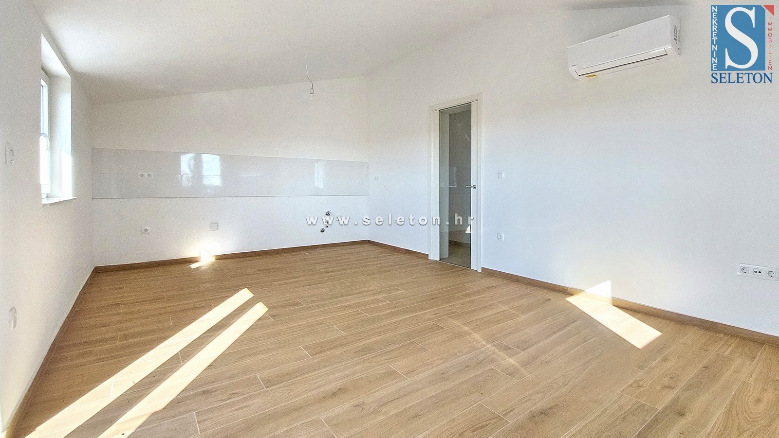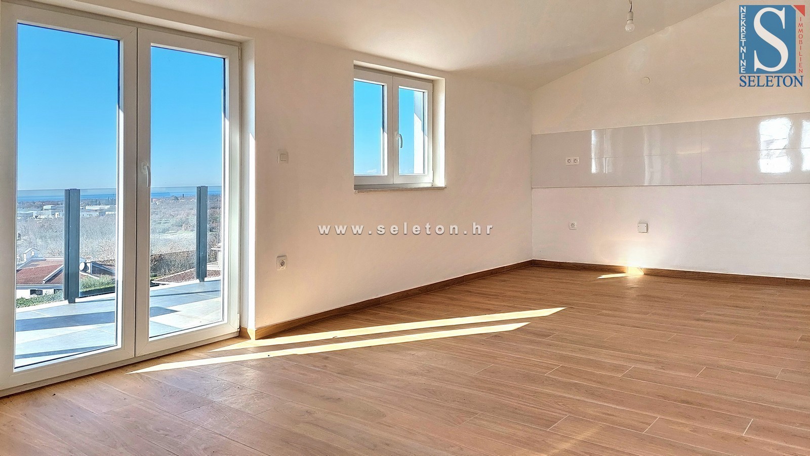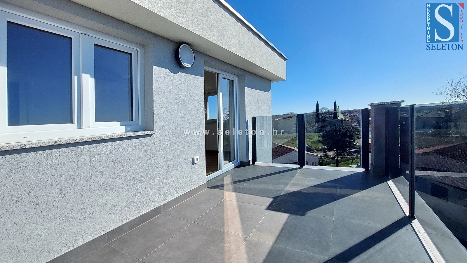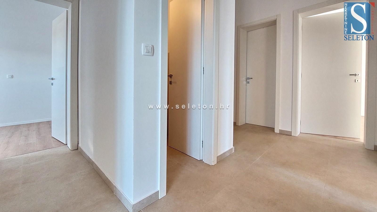 Prodamo stanovanje velikosti 82 m2, sestavljeno iz kuhinje, dnevne sobe in jedilnice, hodnika, 3 spalnic, kopalnice, wc-ja in 2 terasi. Stanovanje se nahaja v 3. nadstropju stavbe, ima 4 klime, protivlomna vrata, talno gretje v kopalnici, pripada mu shramba v kleti stavbe cca 6 m2 in 2 parkirna mesta pred Stavba. Apartma je od Poreča in morja oddaljen približno 7 km, v bližini so trgovine, šole in vrtci.